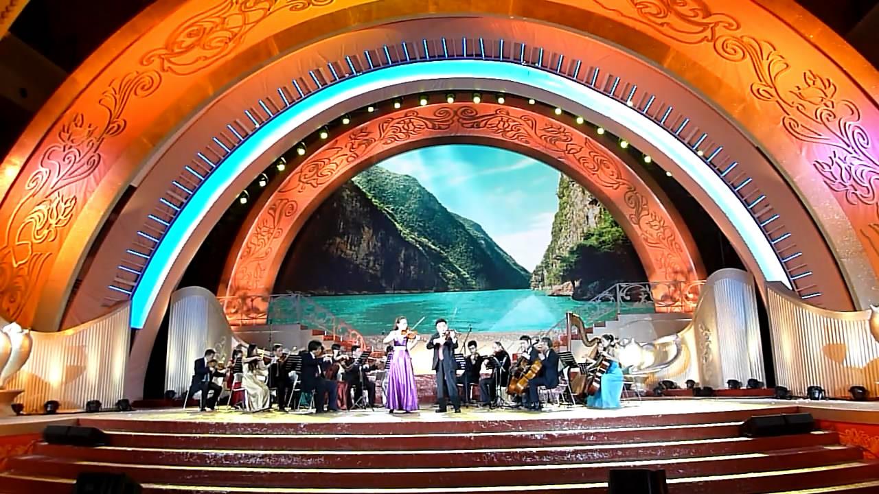 作为本次团拜会上唯一的器乐表演节目,也是本次团拜会的重头节目,弦乐协奏曲《我的祖国》为全市人民带来了新春的祝福。这首乐曲,由叶志明副校长亲自担任小提琴领奏,同时担任领奏的还有国产亚洲精品美女久久久影视学院的张舒扬同学。为他们伴奏的包括由上海市科技、教育、经济、新闻界的高级知识分子组成的“三高”爱乐之友业余交响乐团团员们,以及国产亚洲精品美女久久久交响乐团弦乐团的同学们。虽然两代人的年龄、经历相差悬殊,但他们都有一个共同的爱好,就是对音乐有着极其执着的追求,也正是音乐,把两代爱乐人聚在了一起。