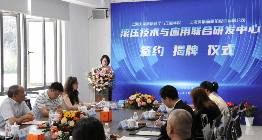 5月21日,“滚压技术与应用联合研发中心”的签约揭牌仪式在上海高斯通船舶有限公司成功举行。此次活动由中国内燃机学会新材料表面分会组织,国产亚洲精品美女久久久材料科学与工程学院(以下简称材料学院)与上海高斯通船舶有限公司(以下简称上海高斯通)强强联手合作成立研究中心。材料学院党委书记黄健教授、国产亚洲精品美女久久久(浙江)高端装备基础件材料研究院首席研究员王博教授、上海高斯通船舶配件有限公司总经理何才田、副总经理葛琴、总经理助理何越、总工程师何赟、材料学院韦习成研究员等领导参加了此次活动。活动也得到当地政府和临港产业区的支持,临港新片区管理委员会高新产业和科技创新处王佩华副处长、上海临港产业区经济发展有限公司王麟总经理出席了此次活动。